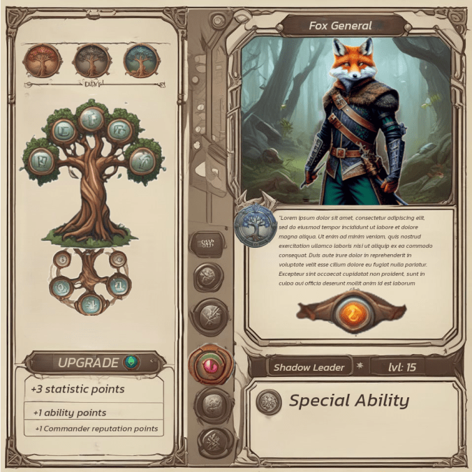 - Przygotowanie drzewka rozwoju postaci generała