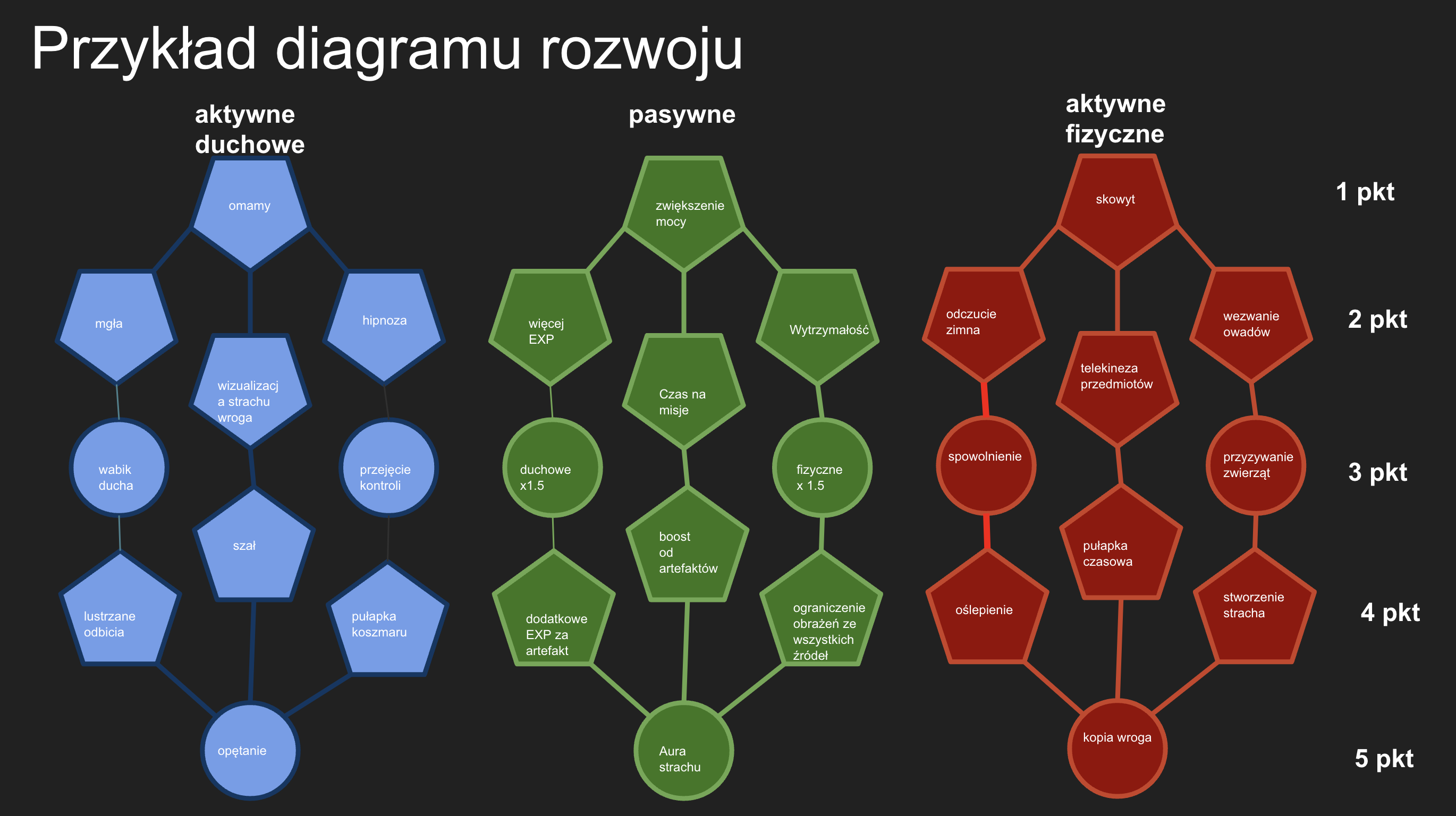 Dodatkowe objaśnienie: Herold rozpoczyna z jedną pasywną i jedna aktywna umiejętnością z każdej z grup. Zdobycie punktów EXP jest zależne od czasu wykonania misji, użycia zdolności – gdyż każdy z wrogów jest bardziej wrażliwy na inną umiejętność.